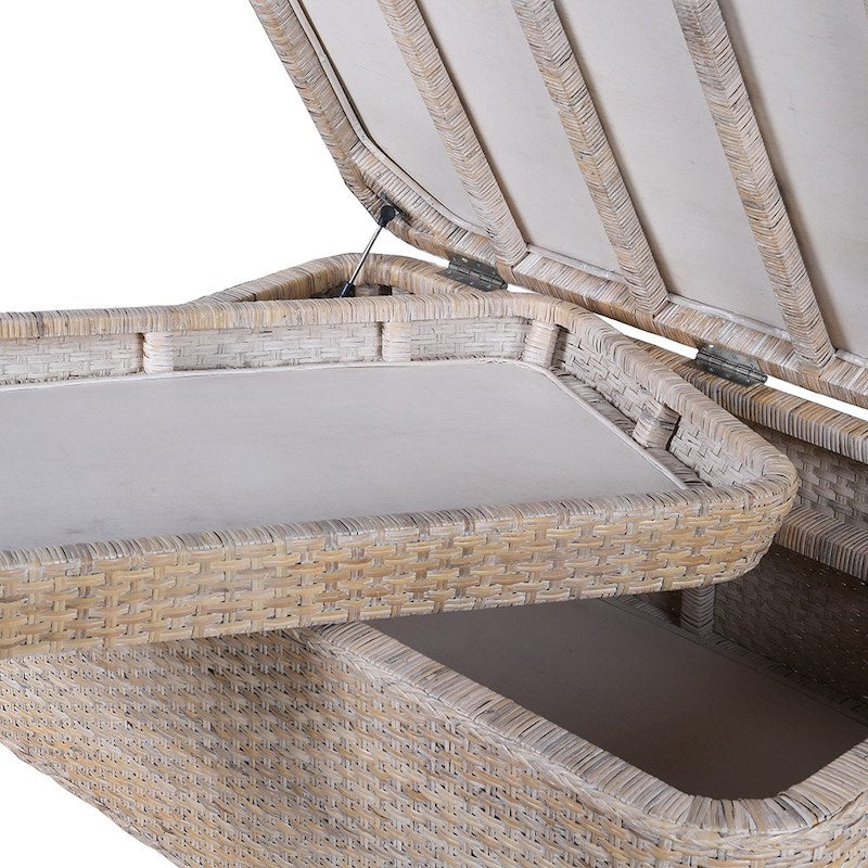 Bermuda Whitewash Rattan Coffee Table Storage Chest with Tray