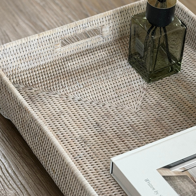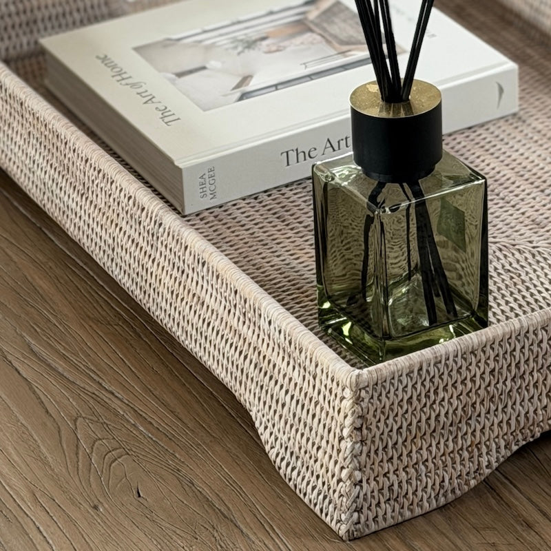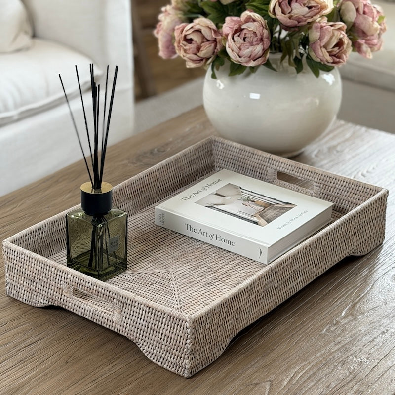 Ideal for anchoring coffee table styling, organising larger surfaces, or creating layered vignettes with ceramics, florals, and linens. A quietly refined piece that brings texture without visual heaviness.
