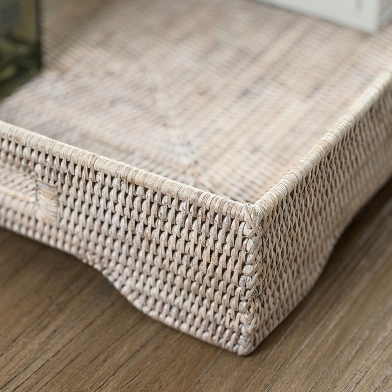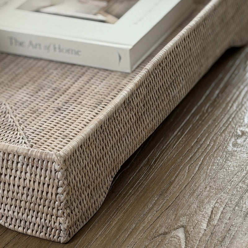 Designed for both relaxed styling and everyday practicality, our extra large whitewashed rattan tray offers a beautifully understated way to organise and display within the home. Crafted from woven natural rattan, the soft whitewashed finish enhances the texture of the weave while maintaining a light, neutral palette suited to calm, layered interiors.