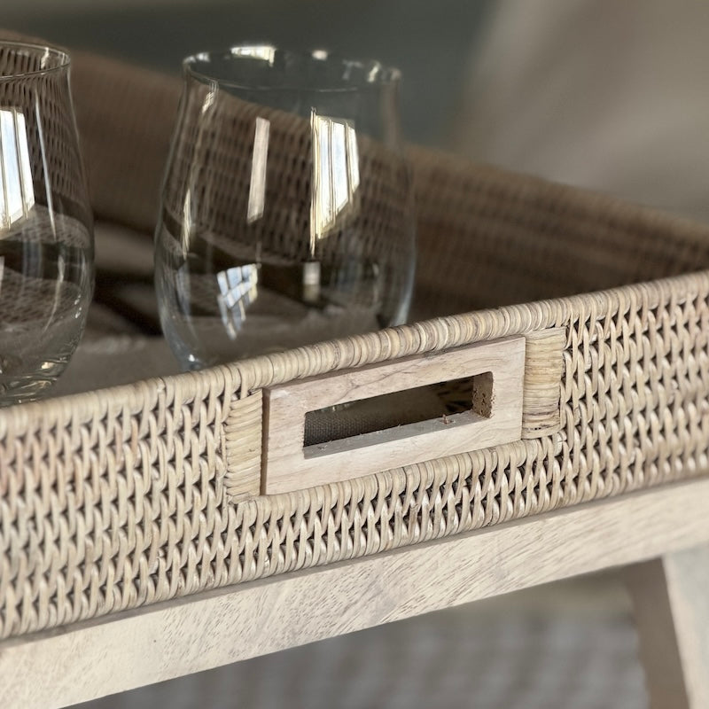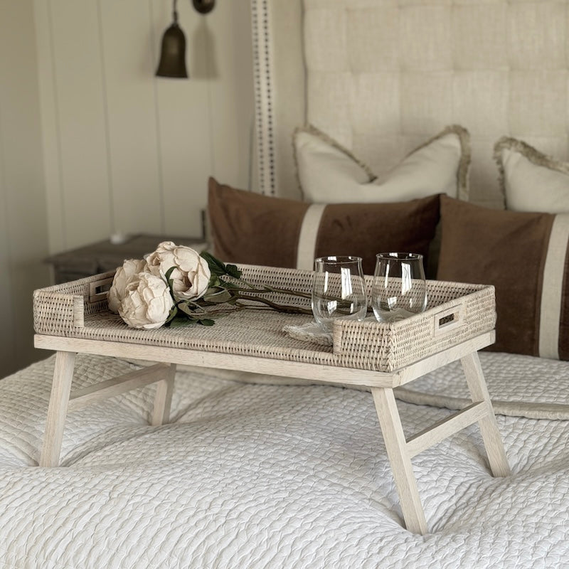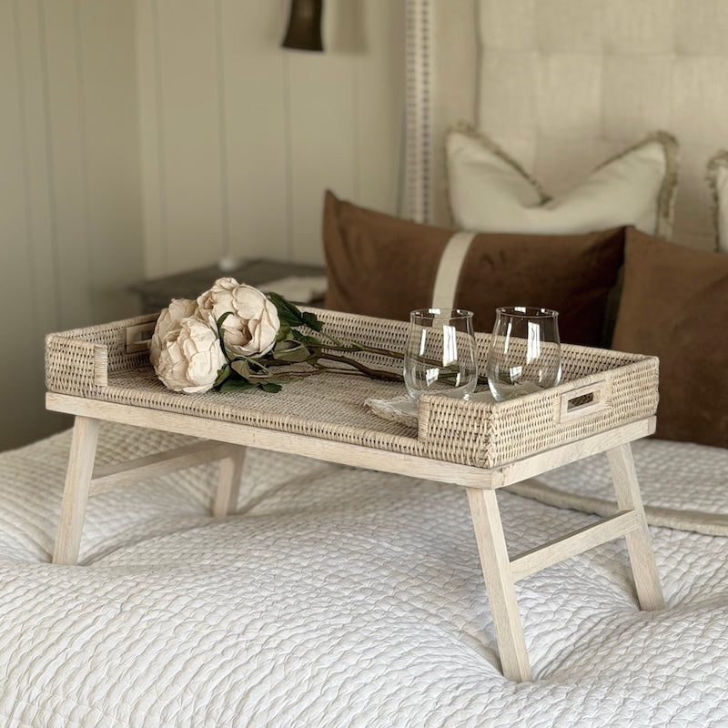 Rattan Breakfast Tray with Wooden Legs | Whitewashed Finish
