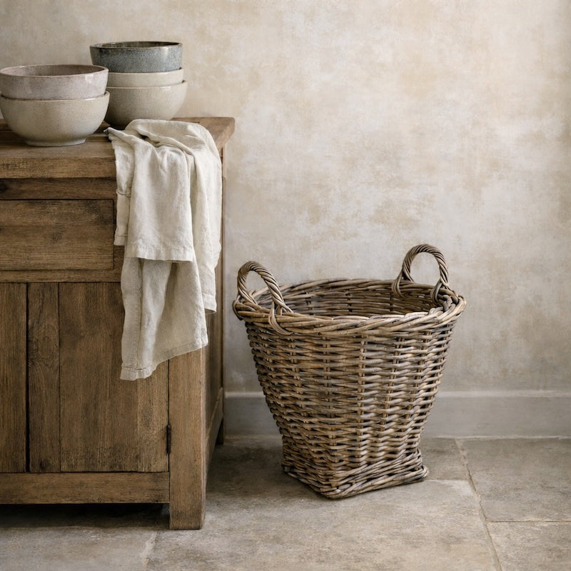 Designed for relaxed farmhouse living, its sculptural form blends practical storage with natural texture — perfect for kitchens, utility spaces or softly styled interiors.