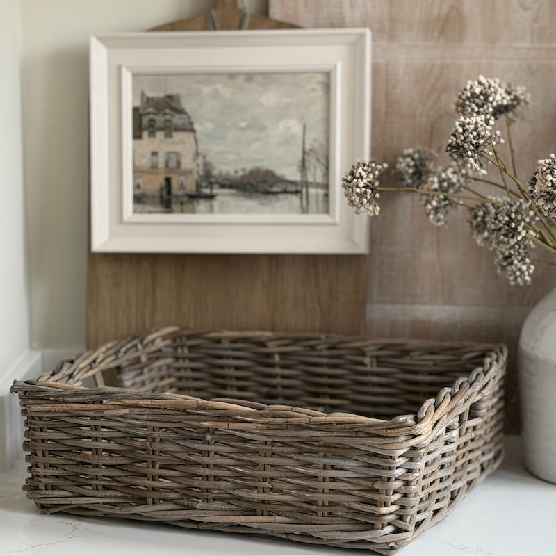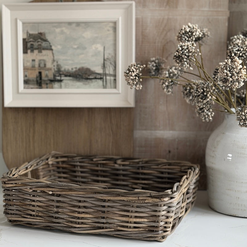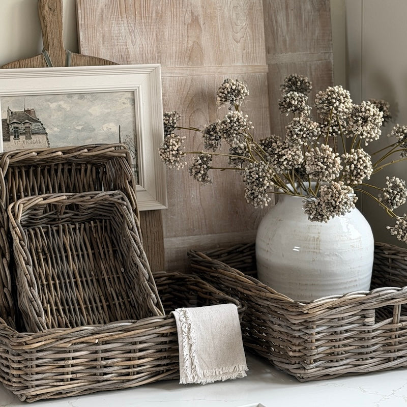 Weathered Kubu Basket Trays – Choice of 4 Shallow Wicker Baskets