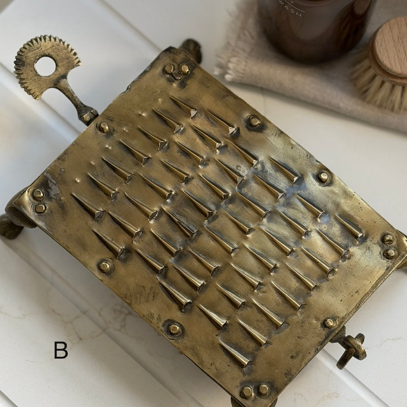 A beautiful balance of function and heritage, our traditional Indian brass vegetable cutters are handcrafted from solid brass.