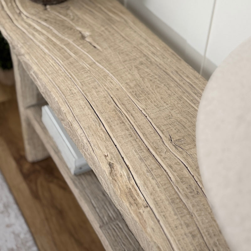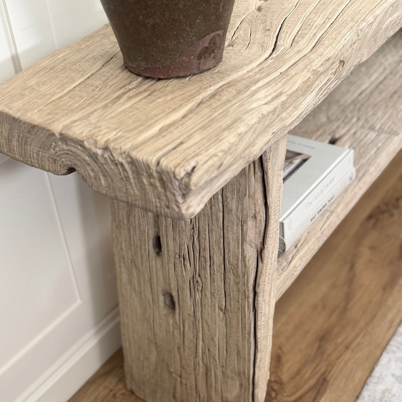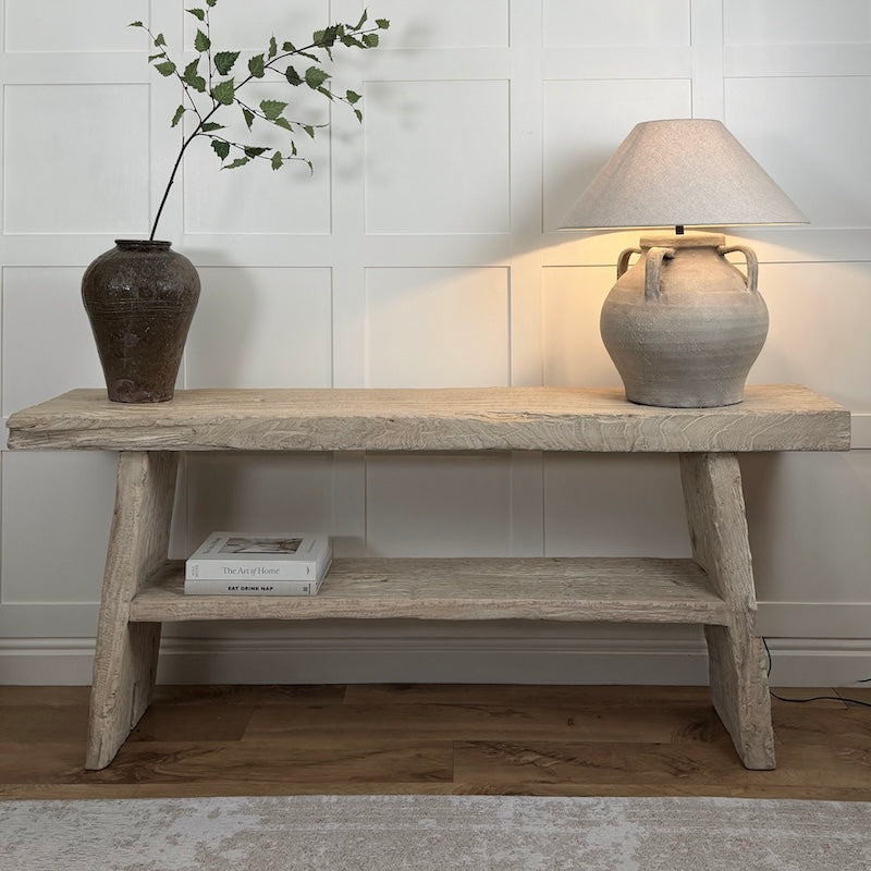 Reclaimed Elm Light Console Table with Lower Shelf – Rustic Country Hallway Table 180cm