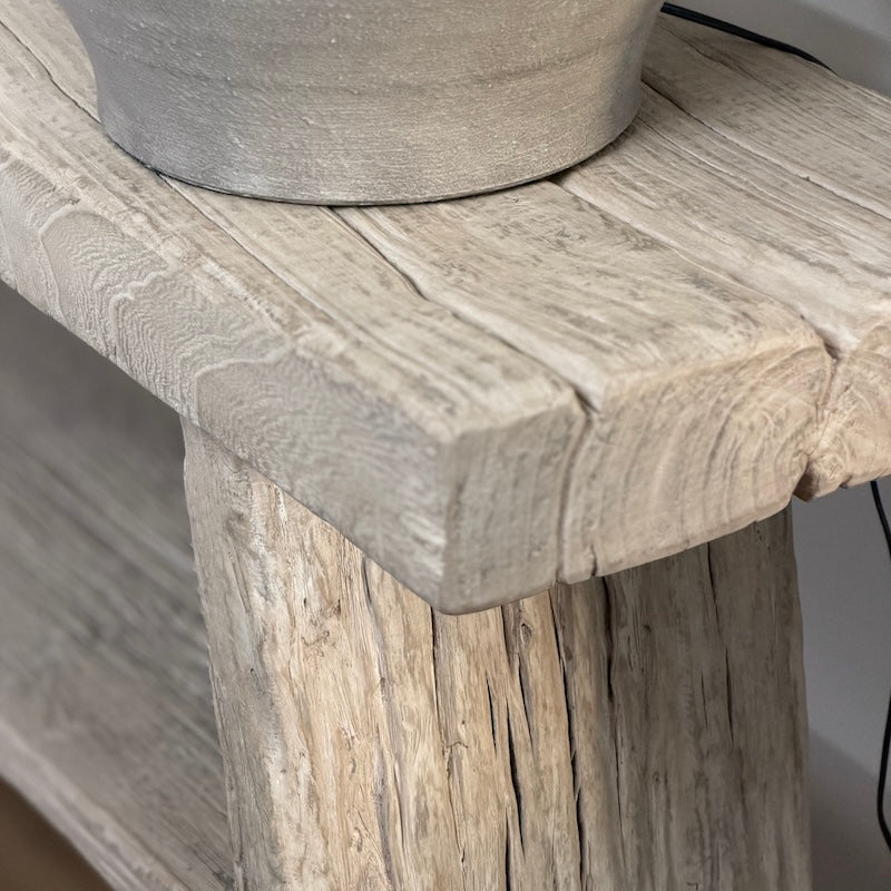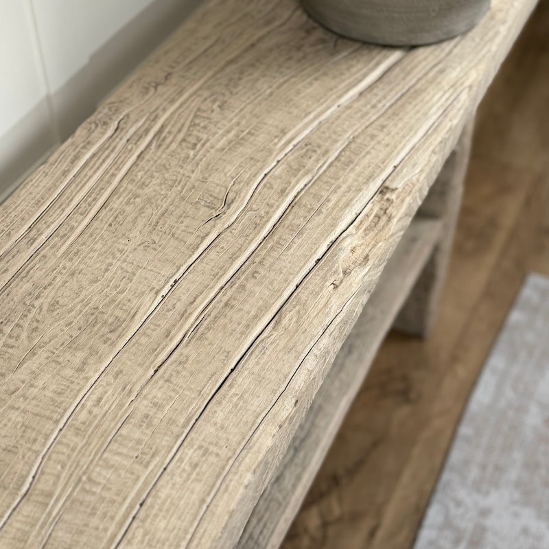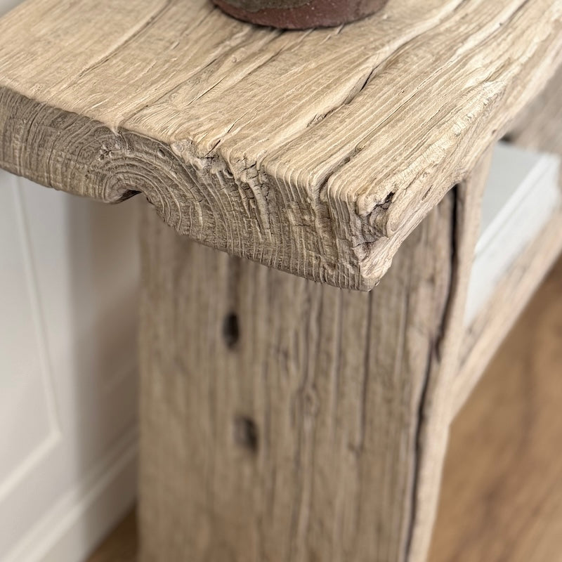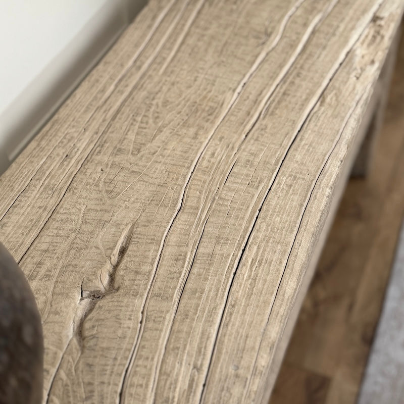 Made from aged reclaimed elm, this rustic console table brings quiet character and timeless country charm to hallways, living spaces and boot rooms alike. Each piece is defined by its softly weathered grain, natural knots and subtle imperfections — a celebration of wood with a past life.