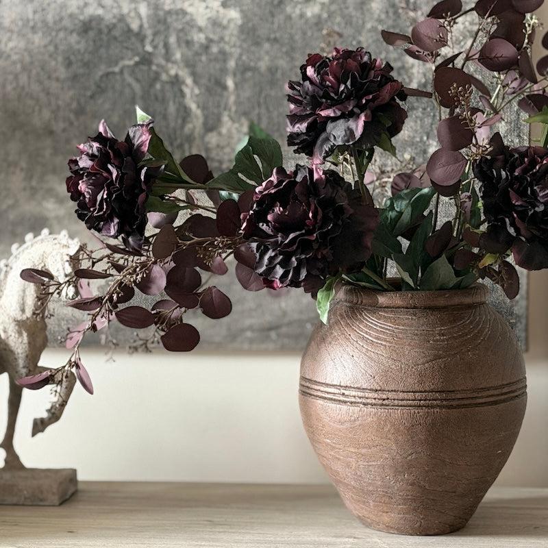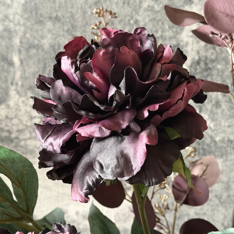 Rich, moody and dramatic, our Faux Deep Plum Peony Stem brings depth and luxury to floral arrangements. With its full, layered petals each bloom captures the beauty of a freshly opened peony—season after season.