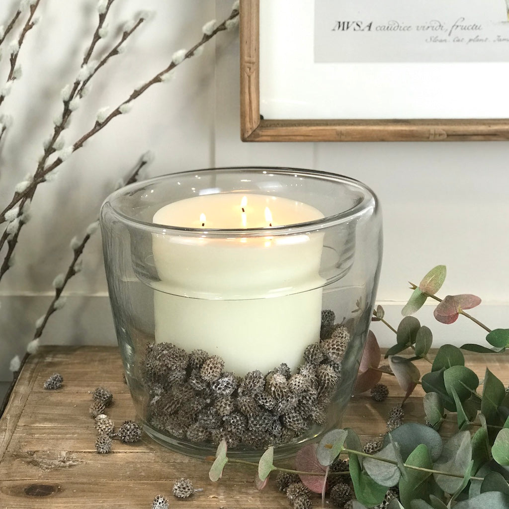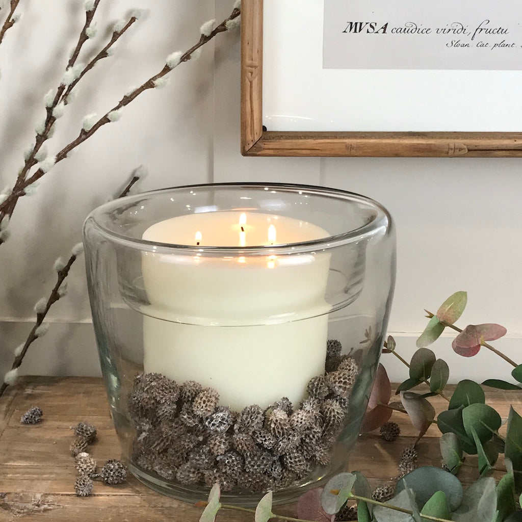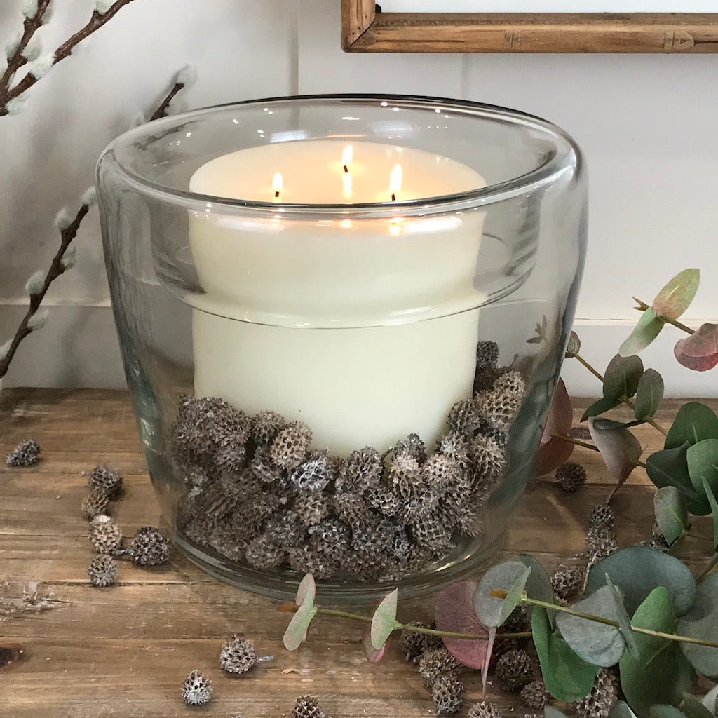 Such a versatile decor item. We like it with a candle but full of water with a floating candle would be super. Or how about for a contemporary orchid arrangement.