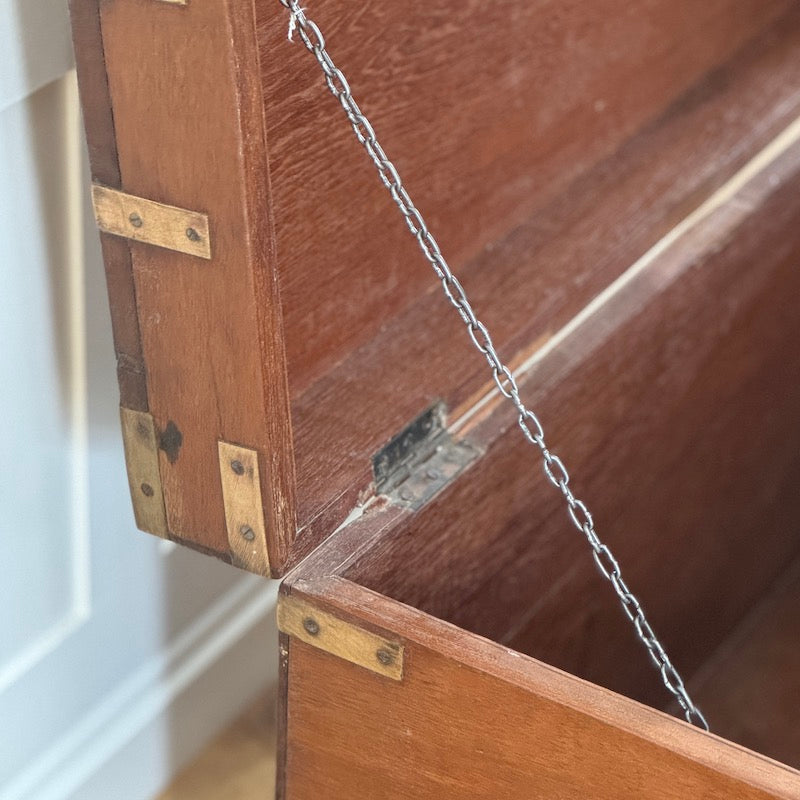 Our brass bound Original Vintage Campaign Teak Chest is a remarkable piece of history, crafted in solid teak and finished with classic brass corner and edge bindings.