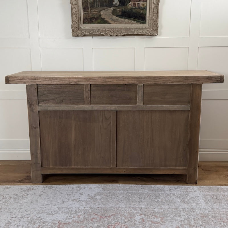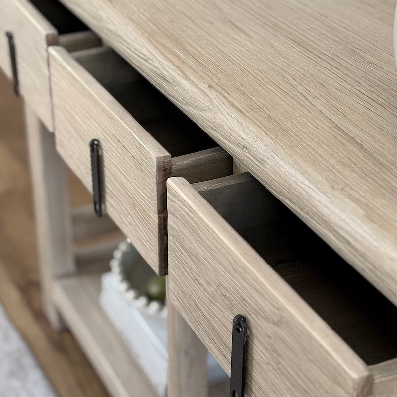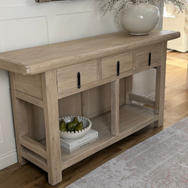 Reclaimed Elm 3 Drawer Solid Back Farmhouse Country Console Table Light - 160cm