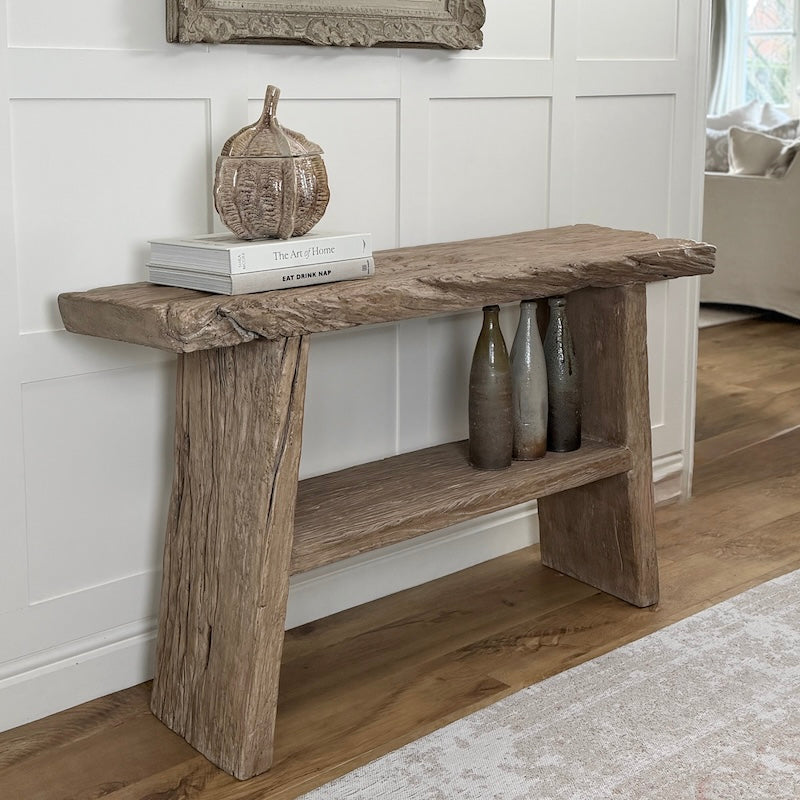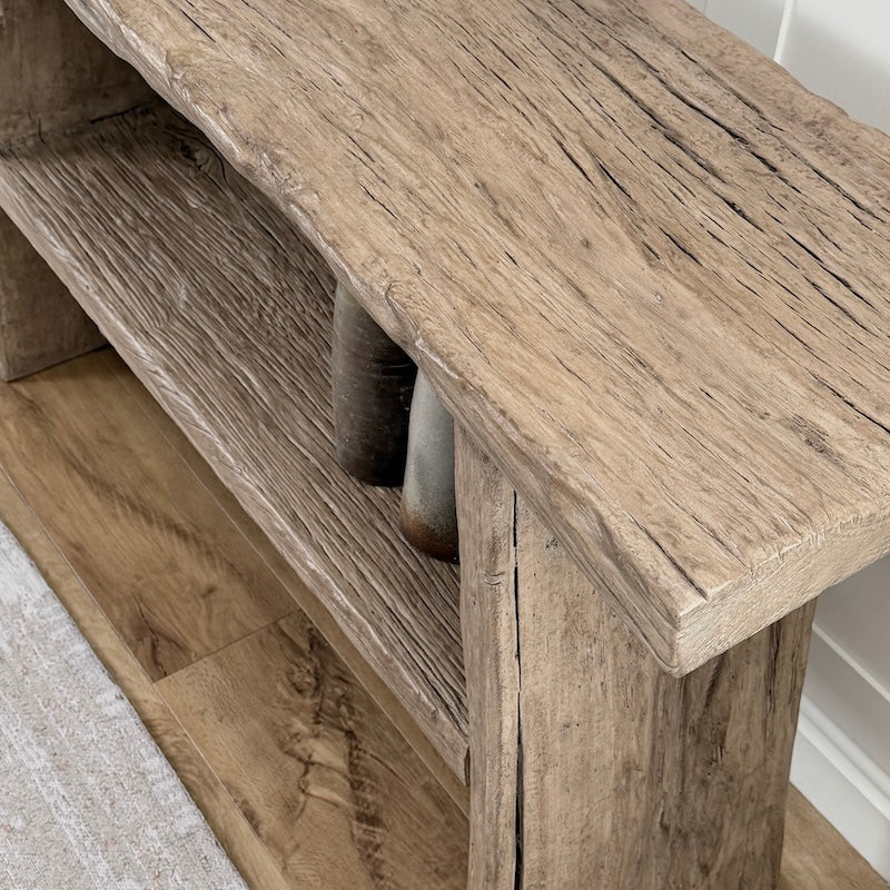 Reclaimed Elm Rustic 2 Shelf Console Dark - 130cm
