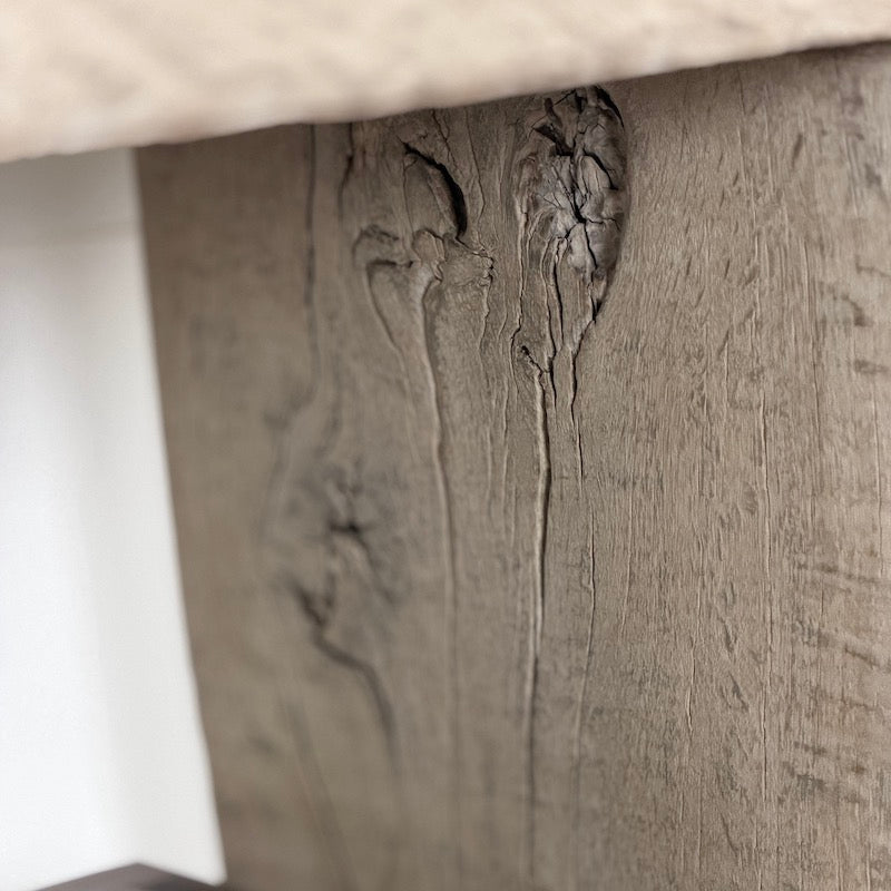 Each piece is unique. Variations in colour, grain, knots and markings are inherent to reclaimed wood and form part of its character.