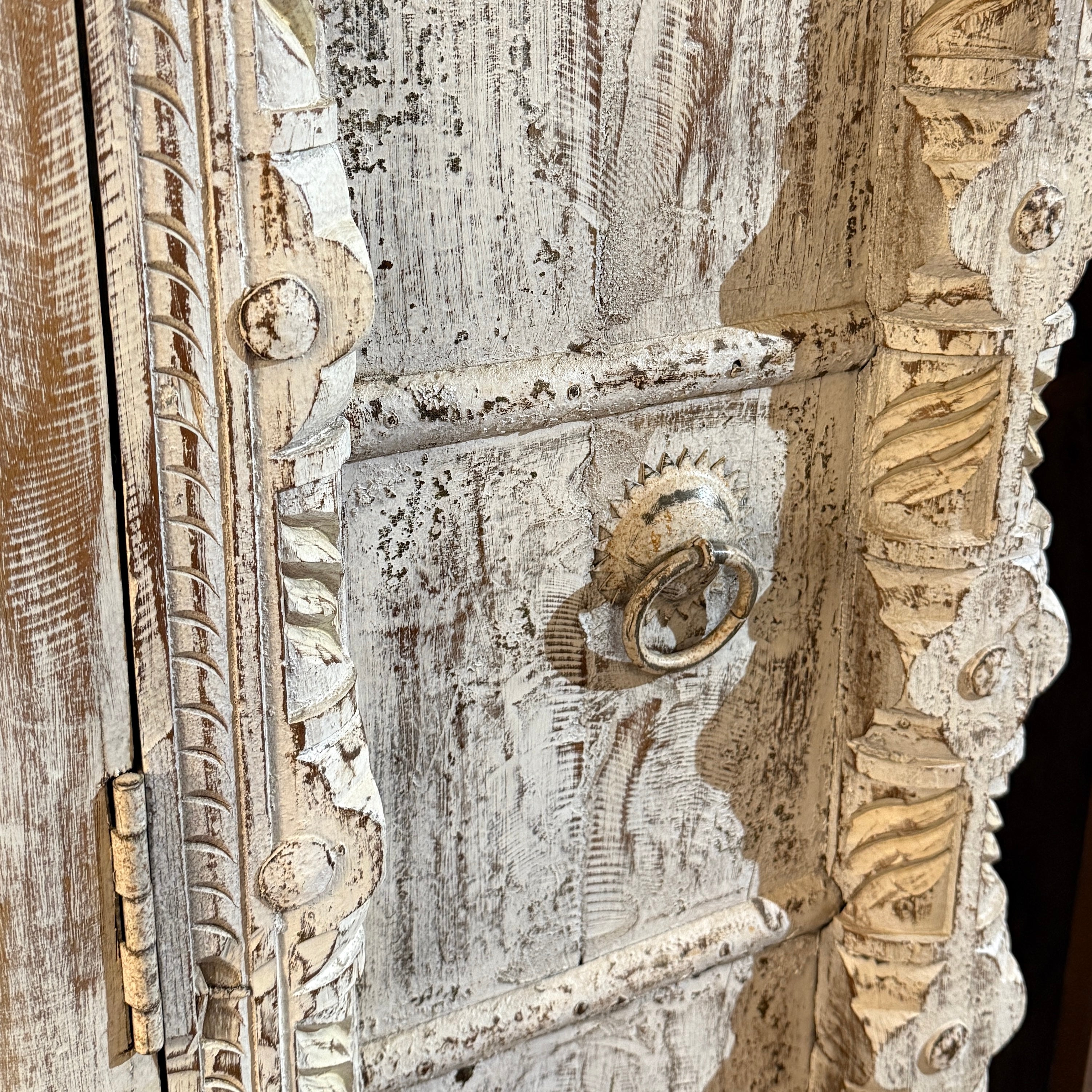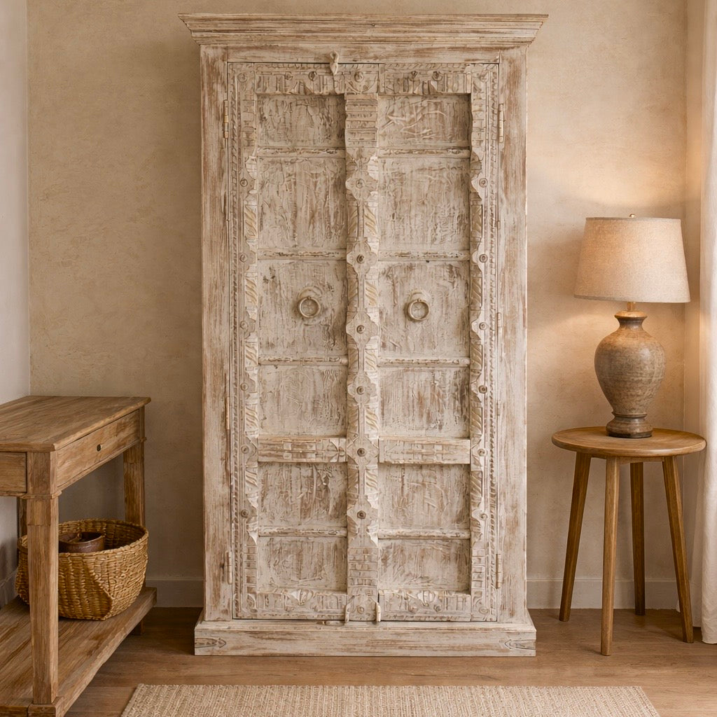 Vintage Indian Whitewash Teak Cupboard